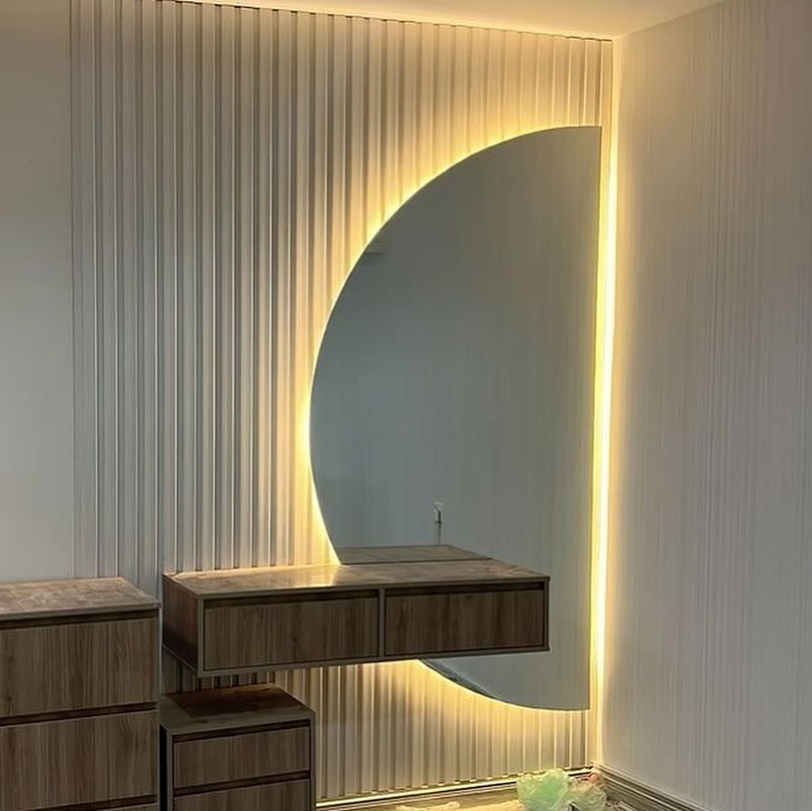 ديكور شاشة جداري (ممتد): يصل إلى 300 سم عرض × 150 سم ارتفاع، وفقًا لحجم الجدار.