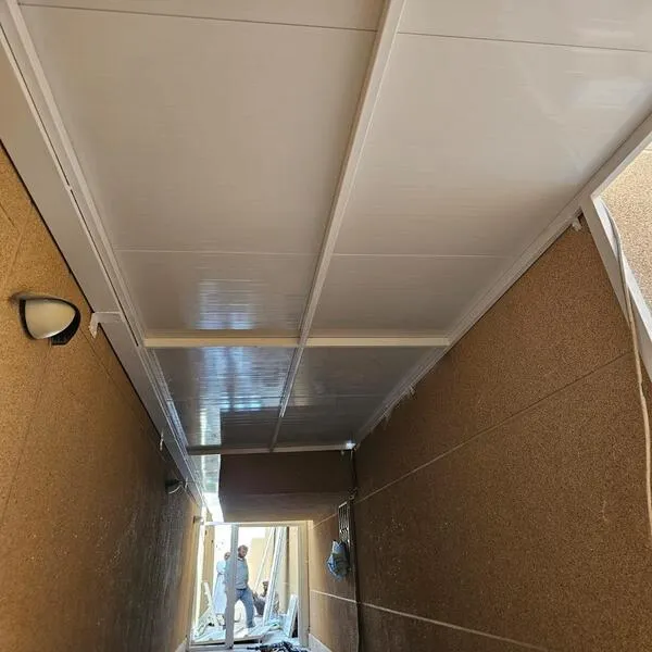 - يتم تركيب السقف بنفس نوع الألواح مع مراعاة الميل لتصريف المياه.