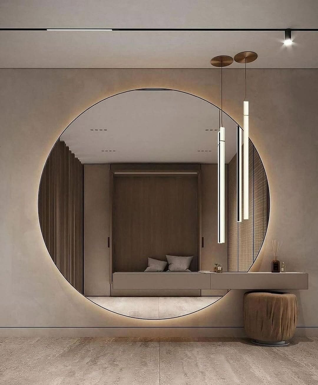 - تركيز الأنظار: يمكن أن تكون المرآة الكبيرة في المدخل عنصر جذب للضيوف، حيث تتوجه الأنوار إليها.