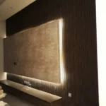 - إضافة إضاءة خلفية خافتة خلف التلفزيون لإضفاء جو مريح.